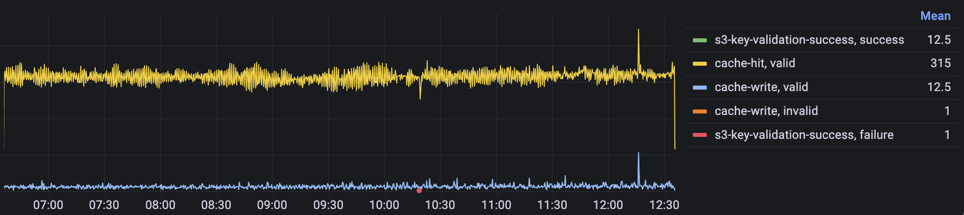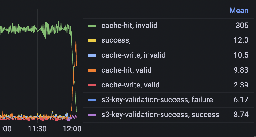 The analytics now showed that most requests hit the cached access key validation and we had no clients complaining.
